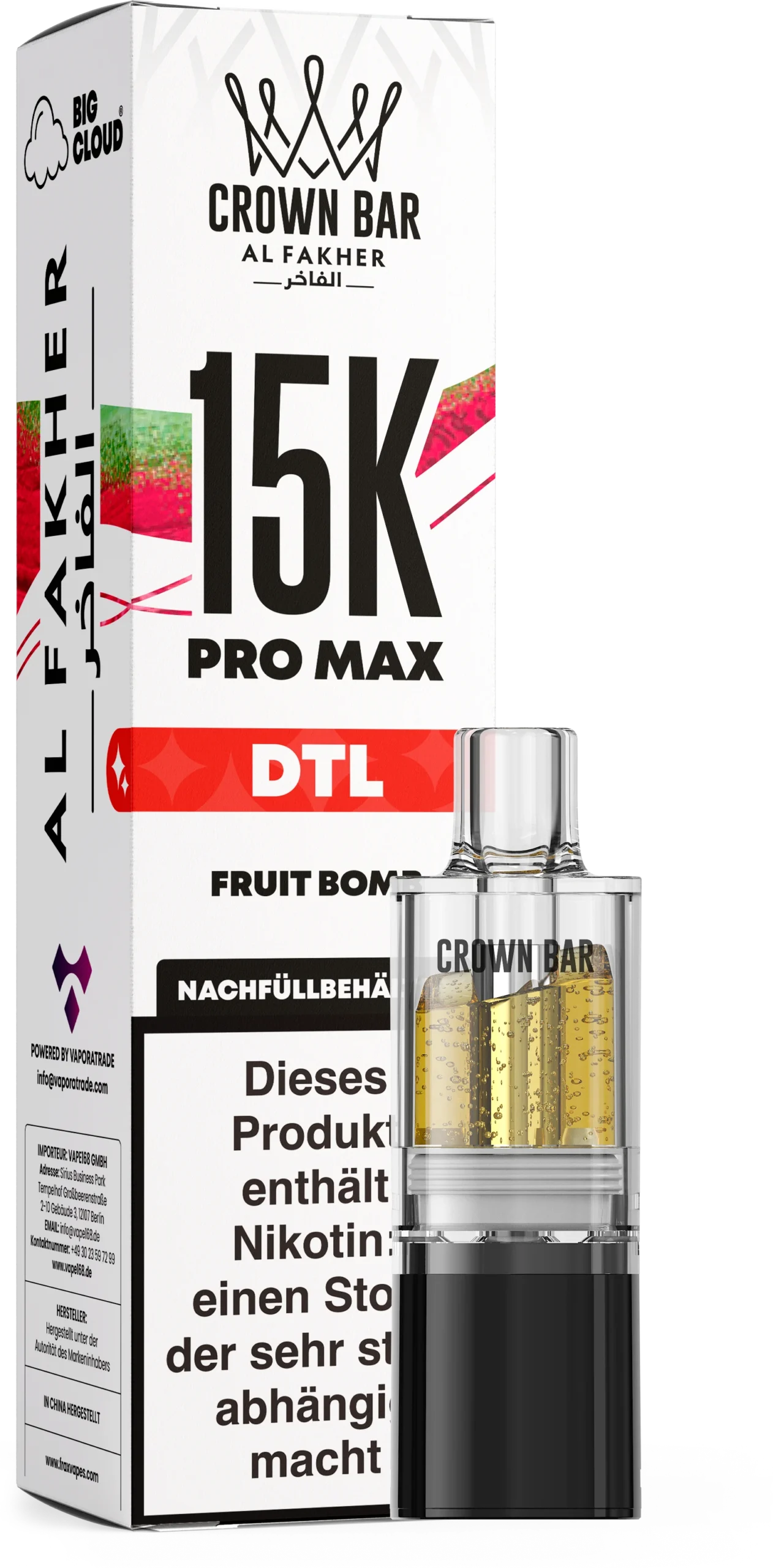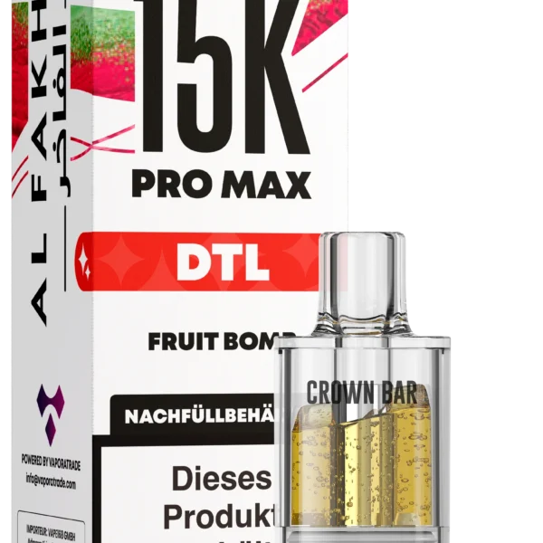 Der Al Fakher 15K Pro Max DTL Pod Fruit Bomb mit 6 mg Nikotin bietet ein intensives, kraftvolles und vielschichtiges Fruchterlebnis. Speziell für das 15K Pro Max Pod-System entwickelt, kombiniert diese Sorte eine explosive Mischung aus süßen, saftigen und leicht säuerlichen Früchten. Das Ergebnis ist ein vollmundiges, aromenstarkes Profil mit sanftem Nikotinkick – ideal für Dampfer, die ein direktes, abwechslungsreiches und geschmacklich intensives DTL-Dampfen bevorzugen.