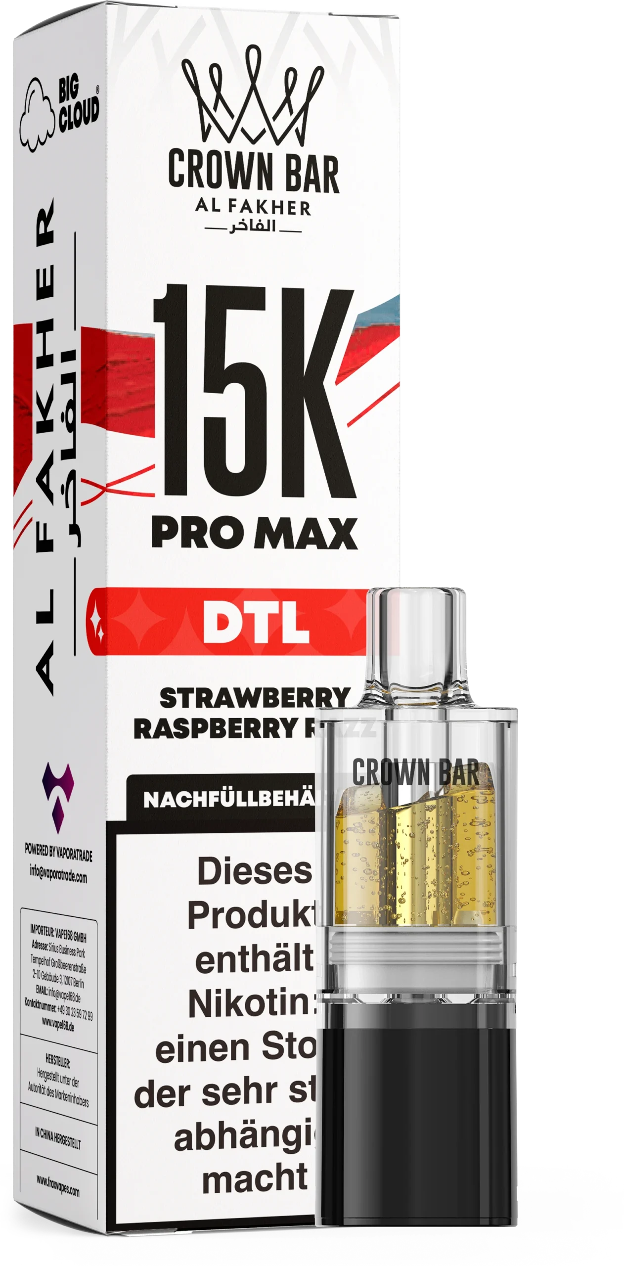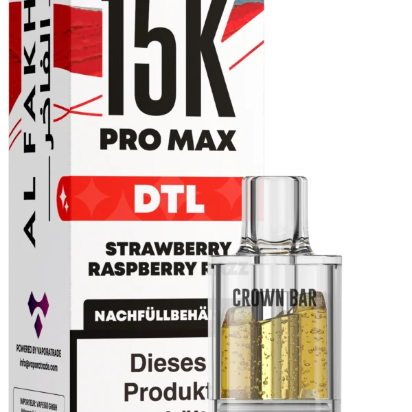 Der Al Fakher 15K Pro Max DTL Pod Strawberry Raspberry Razz 6 mg bietet eine klare, spritzig-süße Beerenmischung mit intensiver, lebendiger Geschmacksentfaltung. In Kombination mit dem 15K Basisgerät entsteht ein direktes, aromenreiches und fruchtig-säuerliches Dampferlebnis – ideal für Liebhaber kräftiger Beerenaromen.